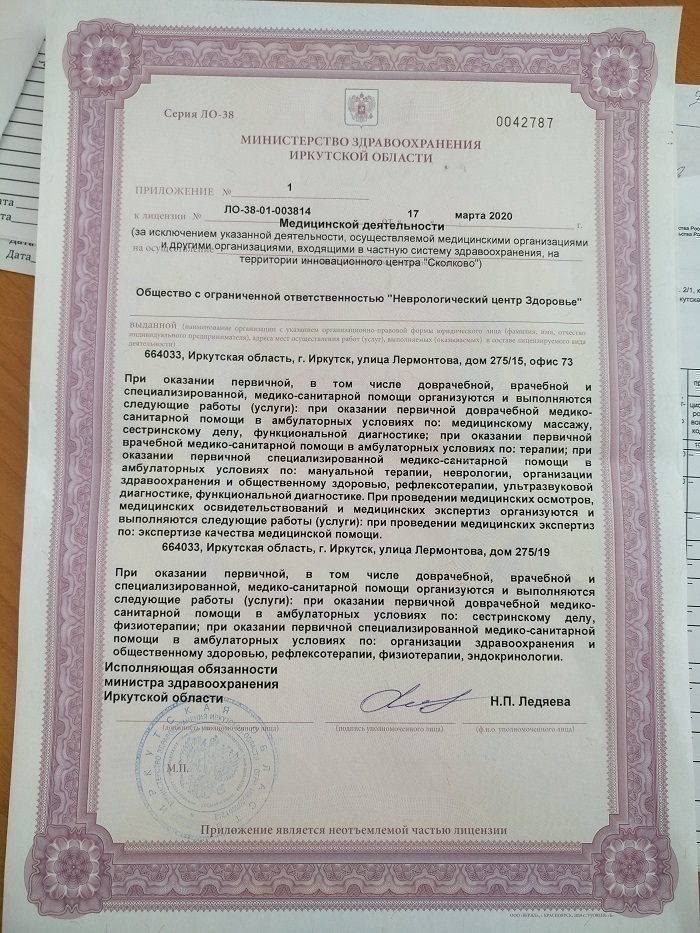 Диапазоны цен на приём врачей и специалистов, услуги и диагностику в Неврологический центр Здоровье в Иркутске.